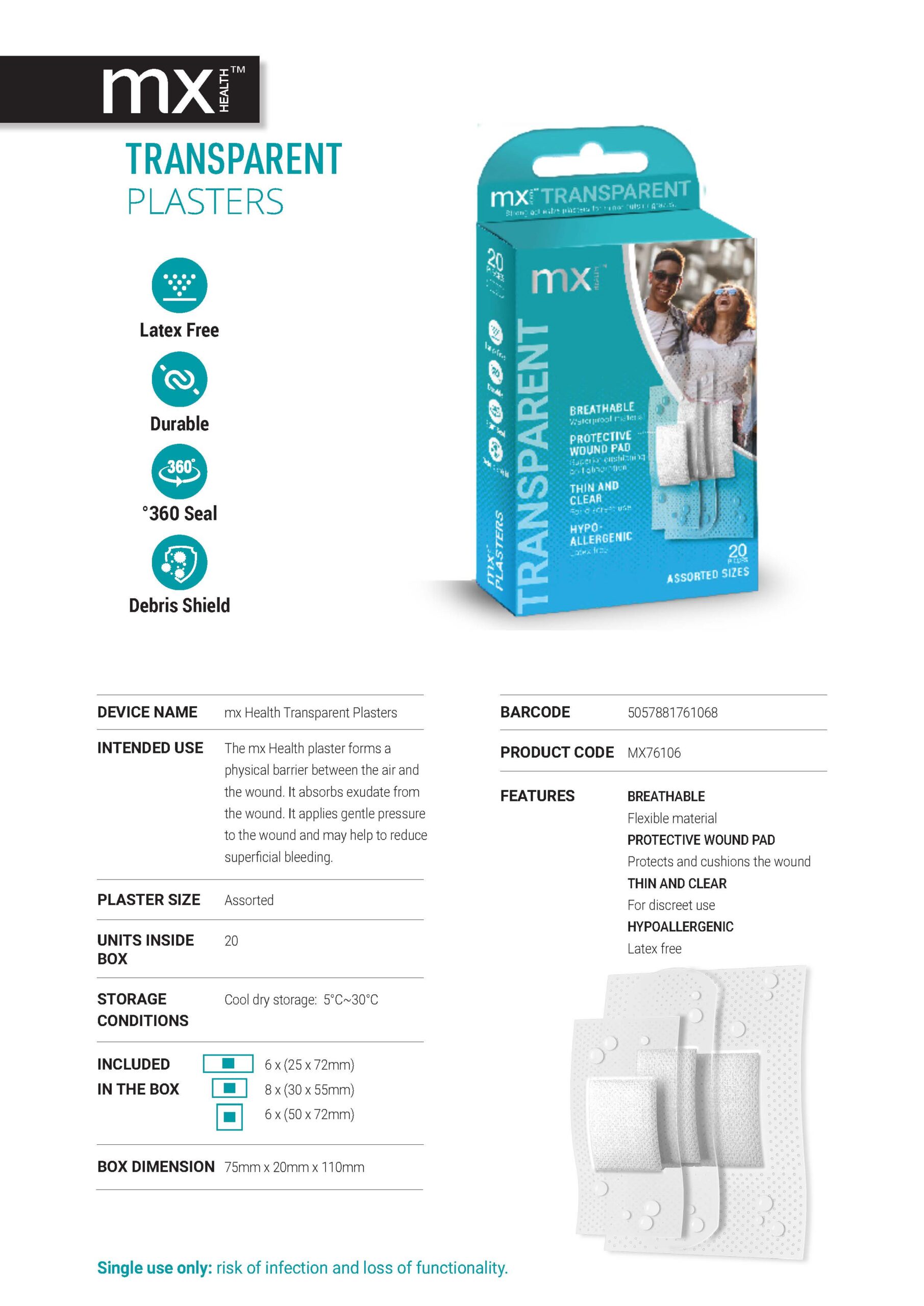 Quantity: 20 individually wrapped plasters in a box