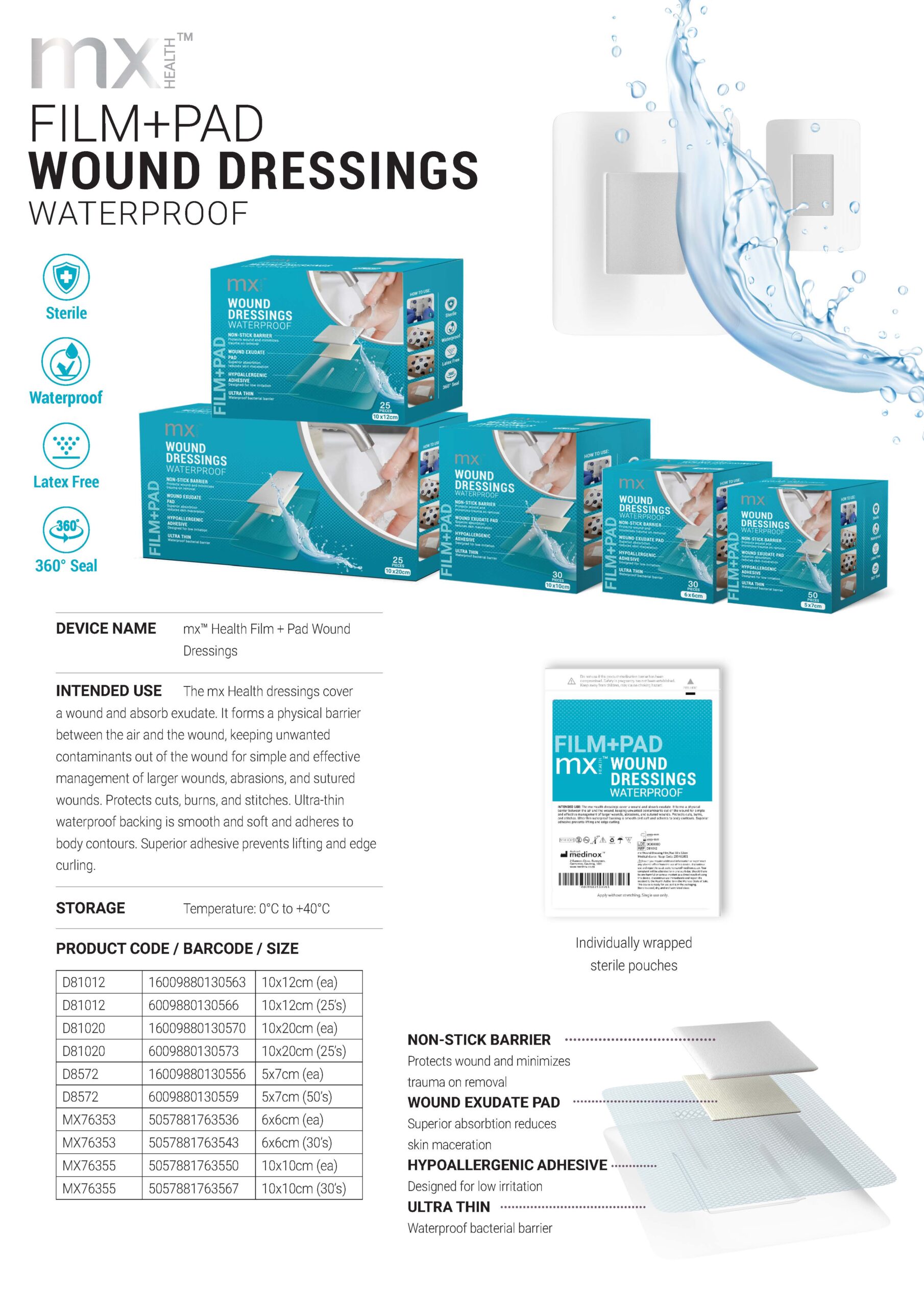 mx Health Fabric Wound dressings serve the dual purpose of covering wounds and absorbing exudate. They establish a physical barrier between the wound and the air, preventing unwanted contaminants for the uncomplicated and effective management of larger wounds, abrasions, and sutured wounds. These dressings offer protection for cuts, burns, and stitches. The ultra-thin waterproof backing, smooth and soft, adheres seamlessly to body contours, enhancing comfort and ensuring optimal wound care.